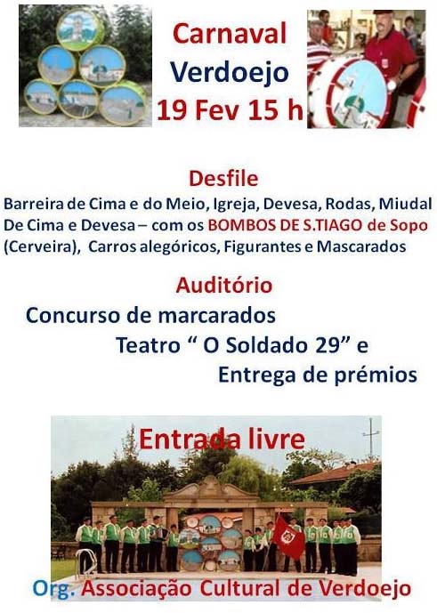19 de Fevereiro, às 15h Corso Carnavalesco em Verdoejo