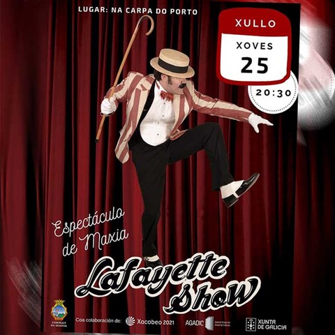 O vindeiro xoves día 25 de xullo a Carpa do Porto da Guarda acolle o espectáculo de Maxia «Lafayette Show» a cargo de Cayetano lledo, un produtor e distribuidor de teatro, ilusionista e actor de improvisación galego.