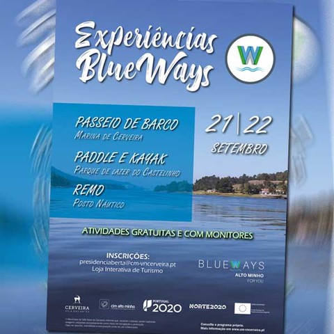 Com o objetivo de valorizar e promover os percursos azuis, a CIM Alto Minho está a dinamizar, até outubro, o projeto ‘BlueWays' pelos 10 concelhos da região. De participação gratuita, Vila Nova de Cerveira tem programado um conjunto de experiências náuticas para o fim-de-semana de 21 e 22 de setembro, nomeadamente passeio de barco, remo, paddle e kayake.