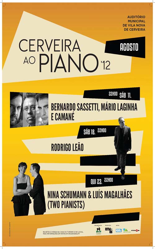 Esta será a quinta edição do evento que, seguindo o formato de anteriores edições, terá três concertos, nos dias 11, 18 e 23 de agosto, pelas 22h00. O primeiro traz ao Auditório Municipal, como referimos, os artistas Camané e Mário Laginha. O segundo espetáculo terá em palco Rodrigo Leão, enquanto Nina Schumann e Luís Magalhães - "Two Pianists" - encerrarão este ciclo 2012, que é uma organização da Câmara Municipal de Vila Nova de Cerveira.
