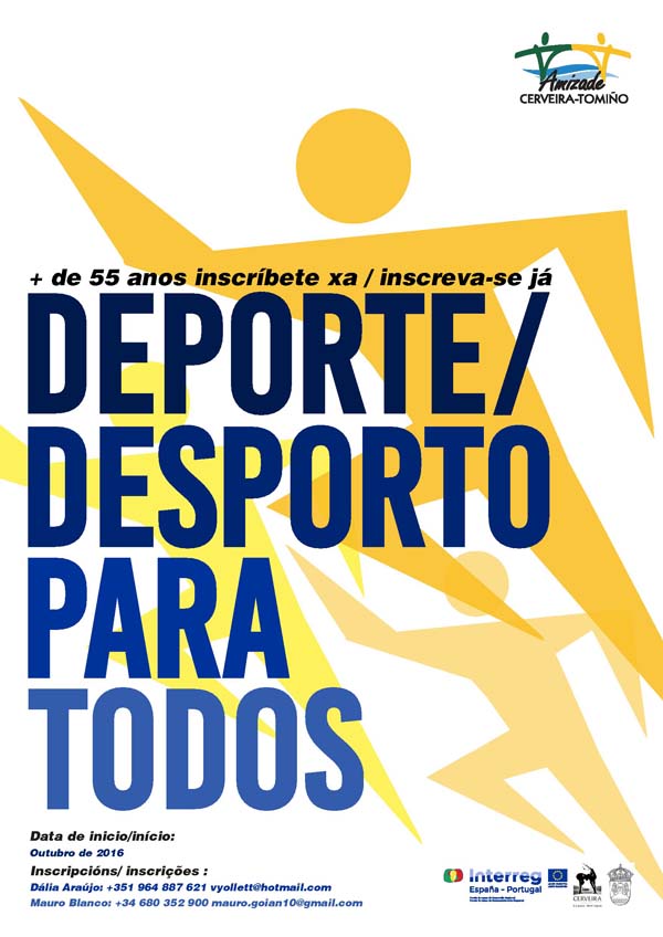 Integrado na Agenda Estratégica para a Cooperação Transfronteiriça de Cerveira-Tomiño, este novo projeto visa oferecer à comunidade de Vila Nova de Cerveira e de Tomiño com mais de 55 anos de idade, sessões semanais de atividade desportiva saudável, controlada e adaptada. O objetivo do "Desporto para Todos" é implementar um plano de treino que vise o convívio, o bem-estar psicológico e físico, a evolução/manutenção da motricidade grossa e fina, e o intercâmbio cultural entre as duas comunidades vizinhas.