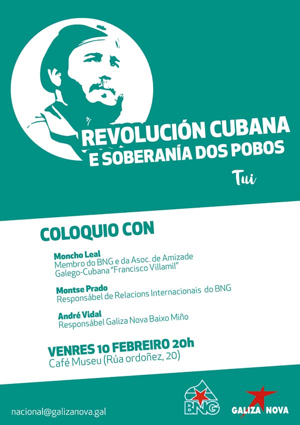 É por iso que desde a asemblea de Galiza Nova no Baixo Miño decidimos traer a Tui a mirada experta de Moncho Leal membro da Asociación de Amizade Galego-Cubana "Francisco Villamil" e de Montse Prado responsábel de Relacións Internacionais do BNG.