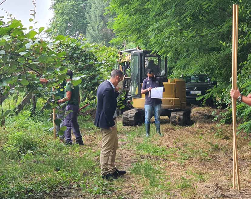 O alcalde de Tui, Enrique Cabaleiro, e a concelleira de Urbanismo, Yolanda Rodríguez, achegáronse esta semana á zona para, xunto cos técnicos, titulares da propiedade e coa empresa contratada, revisar o estaquillado que marca a aliñación da zona na  que se debe retirar a plantación que ocupa o ámbito de actuación por onde transcorrerá o acceso á pasarela. O prazo previsto de execución destas obras é de 15 días.