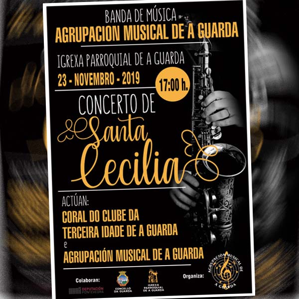O vindeiro sábado 23 de novembro terá lugar o Concerto de Santa Icía que será como sempre, na igrexa parroquial de Santa María de A Guarda, e no que teremos o pracer de contar coa colaboración da Coral do Clube da Terceira Idade, que xunto coa Agrupación Musical de A Guarda celebraremos este día tan sinalado para os músicos. Como novidade este ano cambiamos o horario, será pola tarde dando comezo ás 17:00 h.