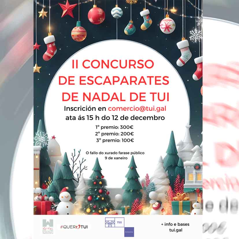 El Ayuntamiento de Tui invita a los comercios locales a participar en el II Concurso de Escaparates de Navidad, incentivando la creatividad y el uso de materiales sostenibles con premios para las mejores propuestas decorativas.