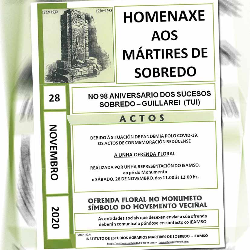 Este sábado 28 de novembro cúmprense 98 anos dos sucesos acontecidos en Sobredo (Guillarei), que concentraron a centos de persoas no lugar para protestar polo embargo das súas propiedades a un veciño que se negaba a pagar os foros.