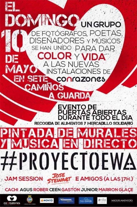 Será un bonito evento solidario e festivo, dónde artistas grafiter@s, músicos, diseñador@s, poetas, fotógraf@s mostrarán durante todo o día o seu arte solidario. Por eso invitamos a tod@s, un día ideal para compartir en familia, cos nen@s participando, pintando murales e así disfrutaremos tod@s xuntos.