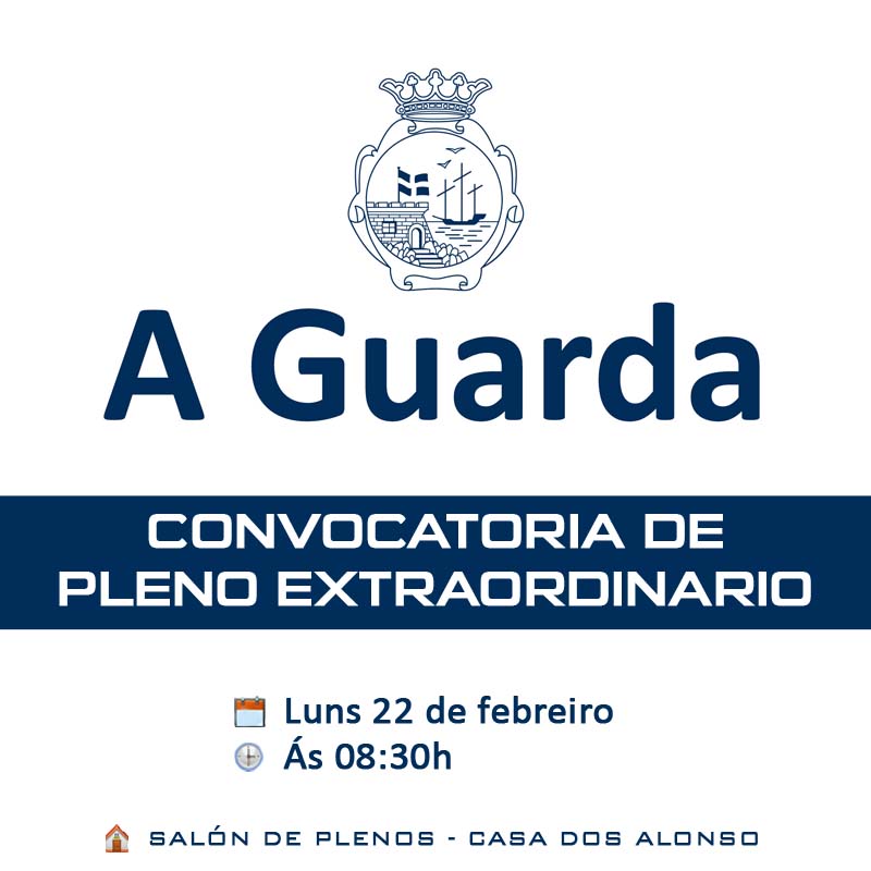 luns 22 de febreiro ás 8:30h no Salón de Plenos do Concello da Guarda