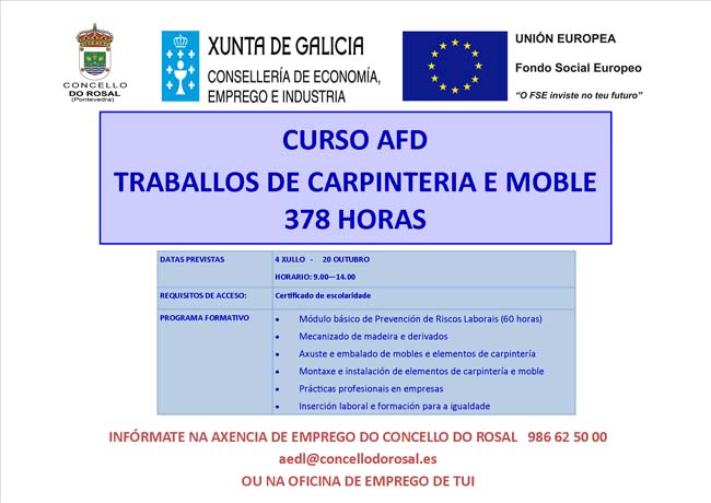 Infórmate na axencia de emprego do concello do rosal 986 62 50 00 aedl@concellodorosal.es
