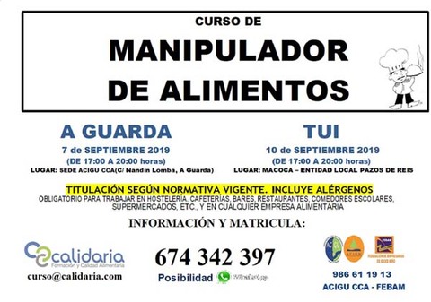 Curso de Manipulador de Alimentos en A Guarda y Tui organizado por Acigu y Febam