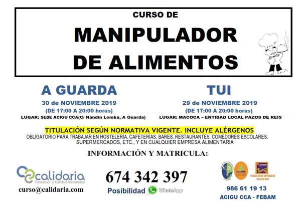 Curso de Manipulador de Alimentos este venres en Tui e o sábado na Guarda