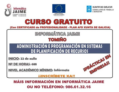 CURSO GRATUITO EN TOMIÑO: ADMINISTRACIÓN E PROGRAMACIÓN EN SISTEMAS DE PLANIFICACIÓN DE RECURSOS