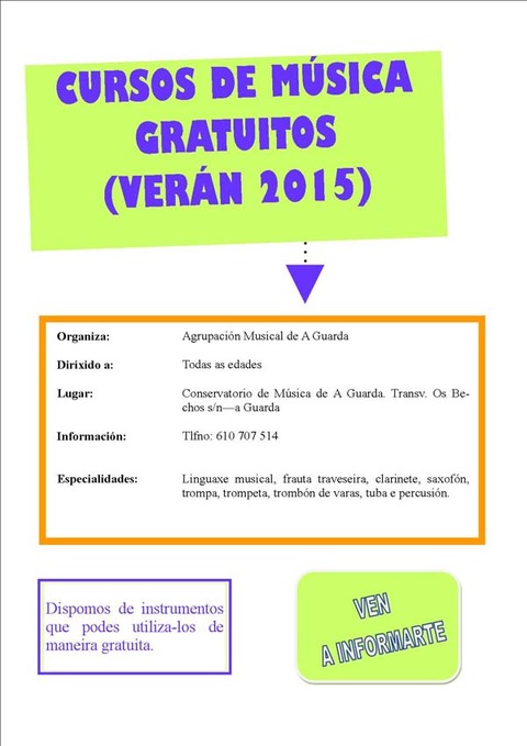CURSOS DE MÚSICA VERANO 2015 EN A GUARDA