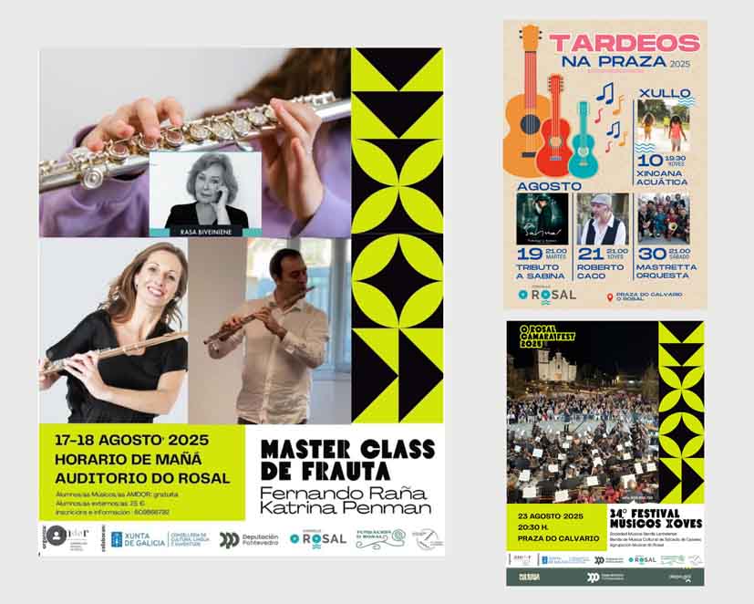 El Concello de O Rosal ha preparado una intensa semana cultural del 18 al 23 de agosto de 2025 con una programación musical dirigida a todos los públicos. La propuesta incluye desde conciertos de música clásica hasta homenajes a grandes artistas, actuaciones de músicos locales y el impulso a jóvenes talentos.