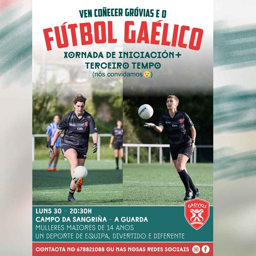 El equipo femenino de Gróvias celebrará una jornada de introducción al fútbol gaélico este lunes en el Campo da Sangriña de A Guarda, con una sesión de confraternización al finalizar.