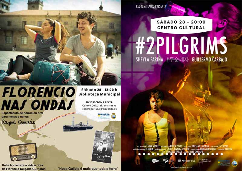 O mesmo sábado á tardiña, ás 20:00h. o Centro Cultural acollerá unha nova obra teatral , neste caso a última proposta de Redrum Teatro: “#2Pilgrims”. A obra aborda o proceso de creación dunha obra teatral a cargo de dous recoñecidos actores como son Sheyla Fariña e Guillermo Carbajo, o Camiño de Santiago será a escusa ou detonante que os protagonistas atopen para iniciar a súa reflexión, na que os temas como a igualdade ou as novas masculinidades formarán parte das súas preocupacións principais.