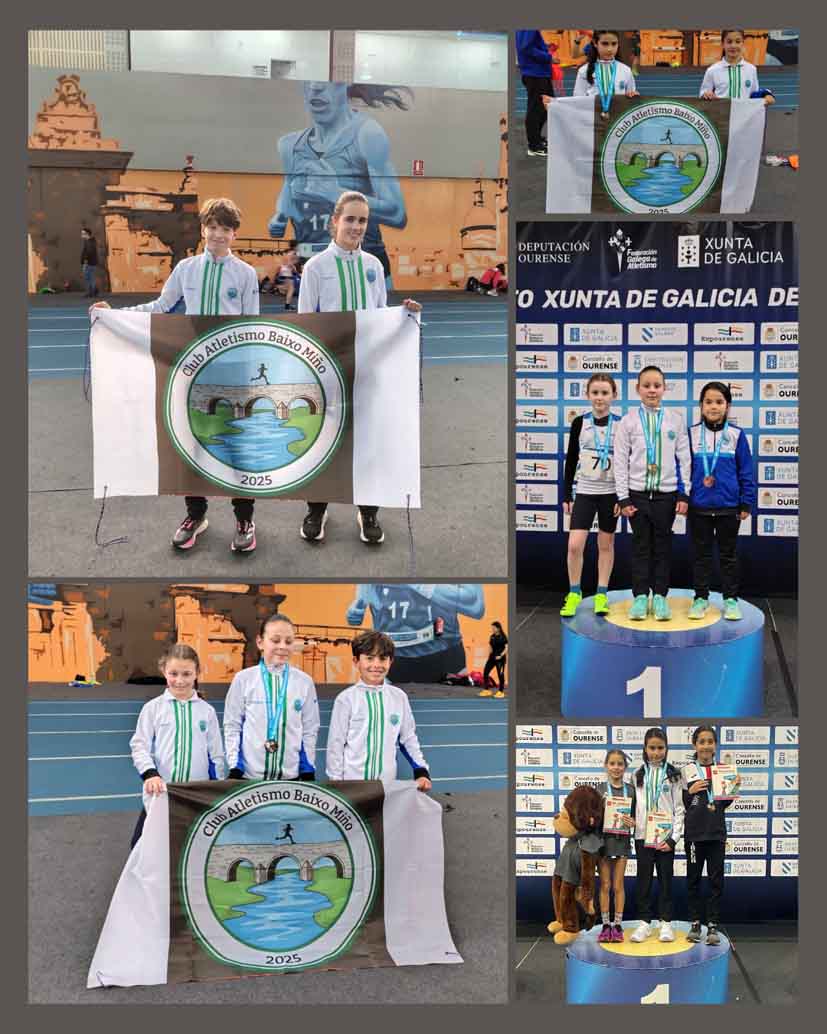 El Club Atletismo Baixo Miño firmó un intenso y exitoso fin de semana en Ourense, donde se disputaron los Campeonatos de Galicia Sub10, Sub12 y Sub14 en pista cubierta, competiciones en las que el club del Baixo Miño estuvo representado en todas las categorías.