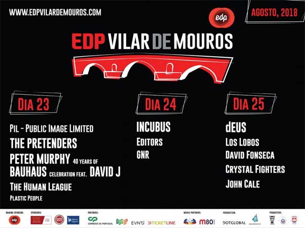 A organização do Festival EDP Vilar de Mouros acaba de anunciar que os Editors e os dEUS vão marcar presença na edição 2018 do Festival mais antigo da Península Ibérica, a realizar-se nos dias 23, 24 e 25 de agosto, no conhecido cenário natural do concelho de Caminha.