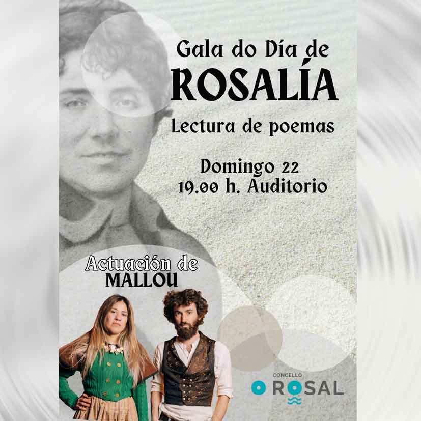 El Concello do Rosal volverá a conmemorar el Día de Rosalía con una velada cultural que combinará poesía y música en el Auditorio Municipal. La tradicional Gala do Día de Rosalía se celebrará este domingo 22 de febrero a partir de las 19:00 horas, con entrada gratuita hasta completar aforo.