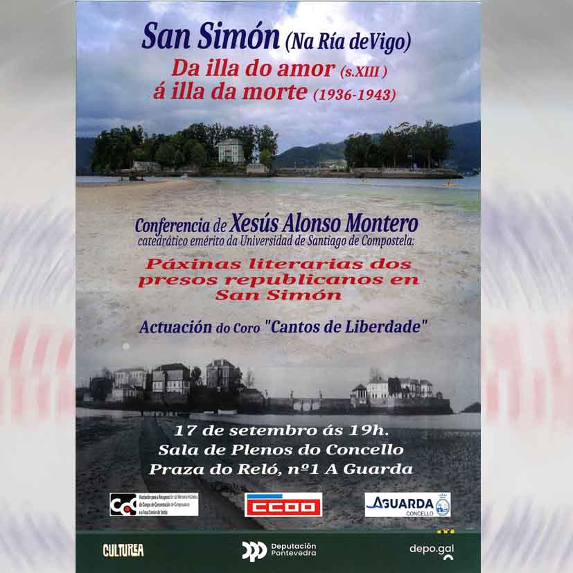 El acto contará con la participación del catedrático emérito de la Universidade de Santiago de Compostela, Xesús Alonso Montero, quien impartirá la conferencia titulada “Páxinas literarias dos presos republicanos en San Simón”. Durante su intervención, el profesor abordará la producción literaria de los presos republicanos en la isla de San Simón, en la ría de Vigo, uno de los lugares más emblemáticos de la represión franquista.
