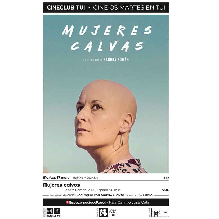El Cineclub Tui ofrecerá el próximo martes 17 de marzo la proyección del documental “Mujeres calvas”, dirigido por Sandra Román, una obra que aborda la alopecia femenina desde una perspectiva personal y social, dando voz a mujeres que comparten su experiencia.