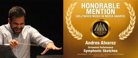 El compositor goianés Andrés Álvarez, acaba de recibir una mención de honor por su composición SYMPHONIC SKETCHES, de parte de la prestigiosa academia Hollywood Music in Media Awards, de Los Angeles, California.