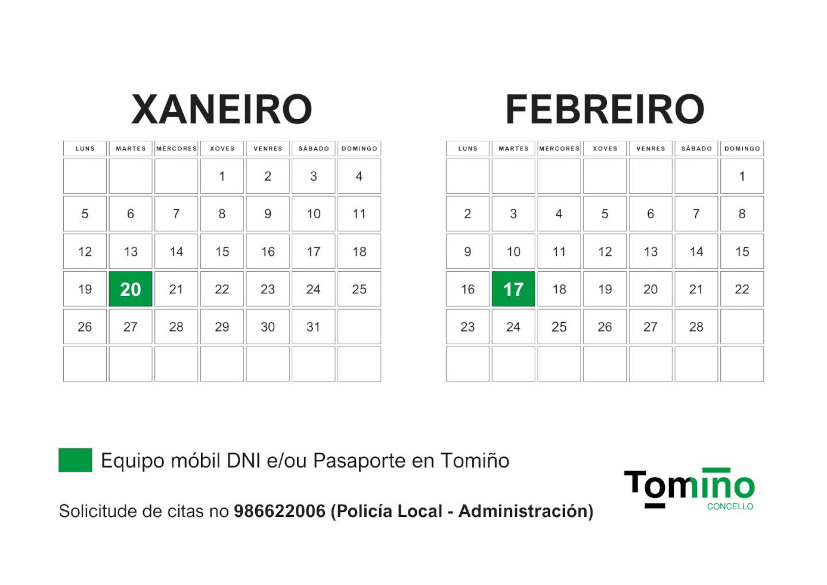El Concello de Tomiño volverá a contar con el servicio de DNI rural el próximo 20 de enero, facilitando a la ciudadanía la realización de diversos trámites sin necesidad de desplazarse a otras localidades. La atención se prestará mediante una unidad móvil de la Policía Nacional, que se instalará en la Praza do Seixo, frente a la Casa Consistorial.