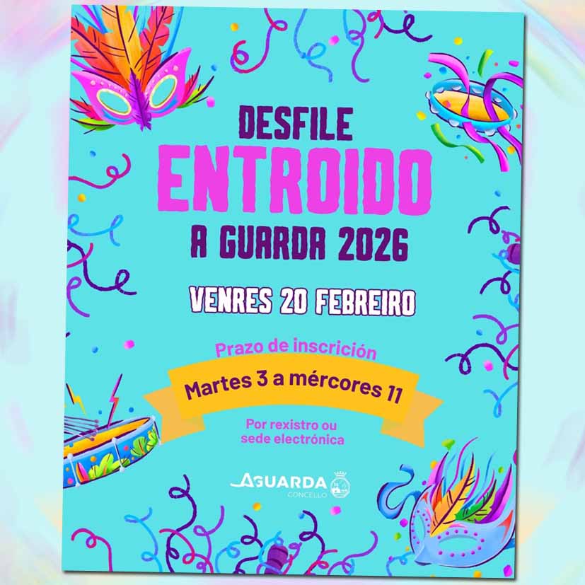 El Concello de A Guarda ya cuenta los días para una de las citas más esperadas del calendario festivo local. El desfile de Entroido 2026 se celebrará el viernes 20 de febrero, a partir de las 20.30 horas, cuando comparsas, carrozas y grupos recorrerán las calles de la villa llenándolas de música, color y ambiente festivo.