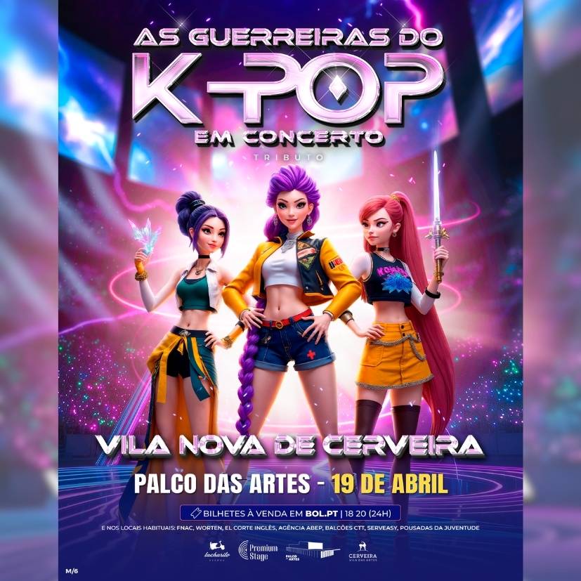 El Palco das Artes de Vila Nova de Cerveira será escenario el próximo sábado 19 de abril, a las 15:00 horas, del espectáculo ‘As Guerreiras do K-POP Em Concerto (Tributo)’, una de las propuestas musicales y visuales más impactantes del momento, dirigida a público infantil, juvenil y familiar. La entrada es permitida y de pago a partir de los 3 años, con apertura de puertas a las 14:00 horas.