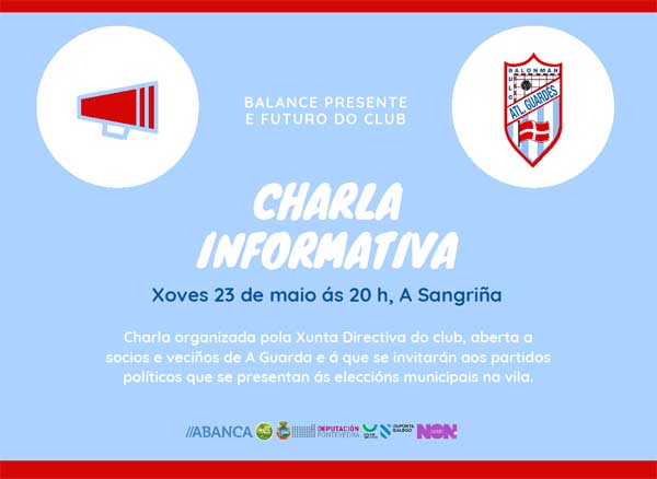 El Club Balonmán Atlético Guardés organiza el jueves 23 de mayo una charla informativa (20 h, Pavillón de A Sangriña) para hacer balance de la situación de la entidad y abordar su futura planifi-cación.