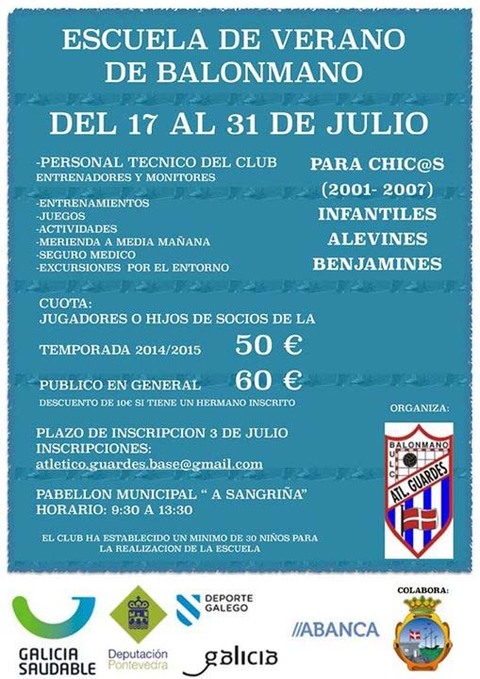 Desde el 17 y hasta el 31 de Julio, se celebrará en el Pabellón Municipal de "A Sangriña" una Escuela de Verano dirigida a niños/as de categoría Benjamín, Alevín e Infantil.