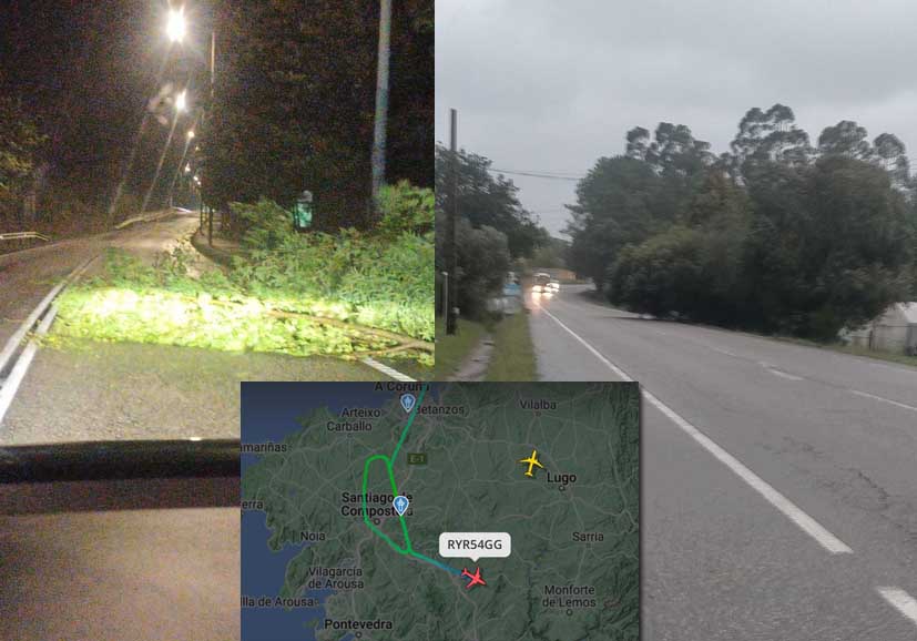 Entre los vuelos más afectados se encuentra el Madrid-Vigo, que, aunque tenía previsto aterrizar en Peinador a las 23:30 horas, llegó con más de 30 minutos de retraso. El vuelo Londres-Santiago de Ryanair, tras dos intentos fallidos de aterrizaje en Santiago, fue desviado finalmente a Madrid. Otro vuelo de la misma compañía, procedente de Madrid y con destino Santiago, tuvo que ser desviado a Málaga. El vuelo Barcelona-Santiago, también de Ryanair, logró aterrizar en Galicia tras un primer intento fallido.