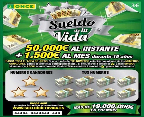 El pasado Domingo día 15 de Febrero de 2015 un único acertante obtuvo un premio directo de 10.000€ con un rasca de "El sueldo de tu vida" de la ONCE.