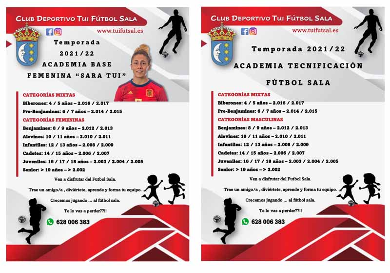 Cualquier niño o niña que quiera inscribirse, puede ponerse en contacto a través de la pagina web www.tuifutsal.es, donde podrá obtener toda la información necesaria como horarios, pabellones, categorías, teléfono, etc … La novedad para esta temporada, es la creación de Categorias Base de niñas, desde los 8 años ( Categoria Benjamin ). Ya puedes formar parte de los equipos femeninos, los cuales hasta ahora solo estaban representados por jugadoras del equipo Senior Femenino y que tendran a Sara “Tui” Gonzalez Rodriguez, como Madrina de este proyecto tan ilusionante.
