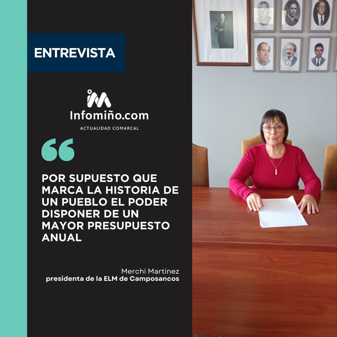 En esta entrevista exclusiva concedida a infomiño, la presidenta de la Entidad Local Menor, Merchi Martínez, repasa las claves de este incremento presupuestario, las actuaciones previstas en infraestructuras y los retos que afrontará Camposancos en los próximos años.