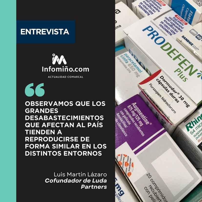 Luis Martín Lázaro, cofundador de la empresa Luda Partners, analiza el impacto de las faltas de medicamentos en O Baixo Miño junto a un farmacéutico de la red y detalla soluciones para el rural.