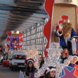 A Cabalgata estivo animada con música de grupos folcklóricos e moitos dos paxes reais empregaron un comboio turístico para lanzar as lambonadas e chuches ós nenos e nenas que se atopaban polo percorrido da mesma.