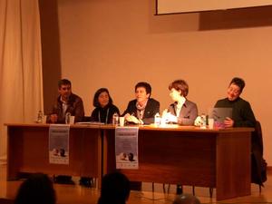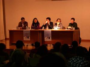 A conferencia abríuse trala intervención de Pilar Carro Loureiro, Directora do IES A Sangriña, quen cedeu a palabra trala súa intervención a "Sole", Asistente Social do Concello de A Guarda, Esteban Figueirido, Psicólogo Especialista en Terapia Familiar e Loli Estévez, Matrona do Centro de Saúde de A Guarda, e Carmen Mosquera, Pediatra do Centro de Saúde de A Guarda.