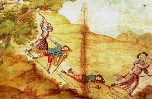Así mesmo, outro dos ilustres visitantes destas terras foi Nicola Albani (no ano 1743), outro nobre italiano que tamén deixou testimonio gráfico do seu paso polo Camiño pola costa, pero esta vez na sua volta de Santiago de Compostela e cun tinte mais amargo, pois o seu propio séquito asaltoulle cando estaba en A Guarda, polo que tivo que defenderse deixando a un dos seus asaltantes moribundos e quedando sen moitas das suas pertenzas. Deste feito pon denuncia á sua chegada a Caminha, e deixa proba do proverbio "meglio solo che mal'accompagnato" (mellor so que mal acompañado)