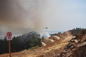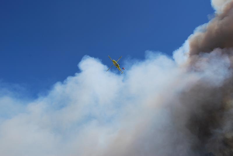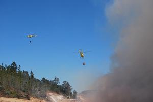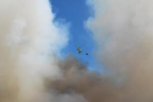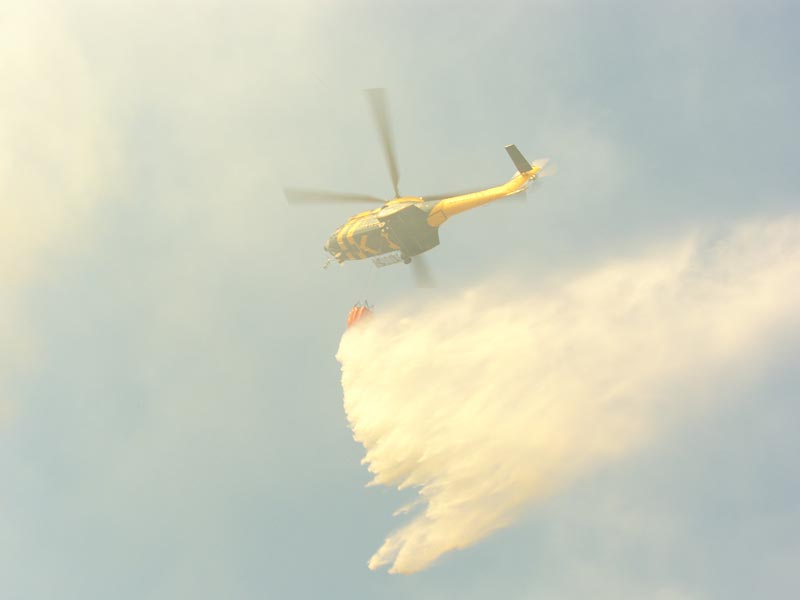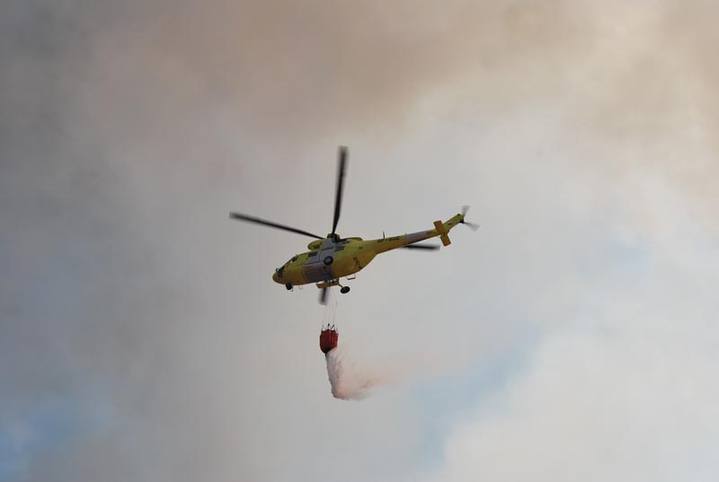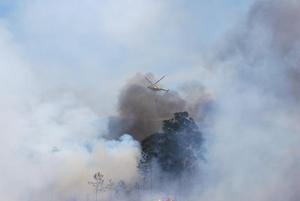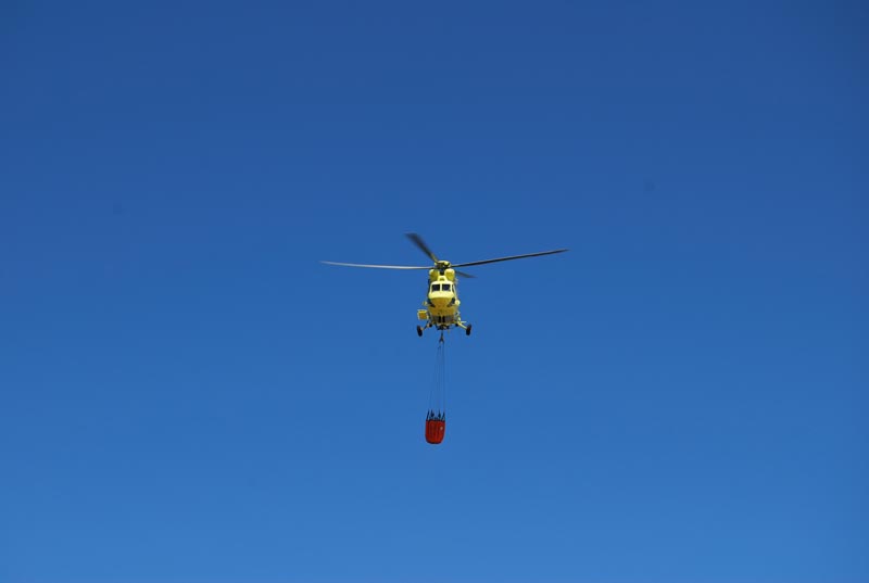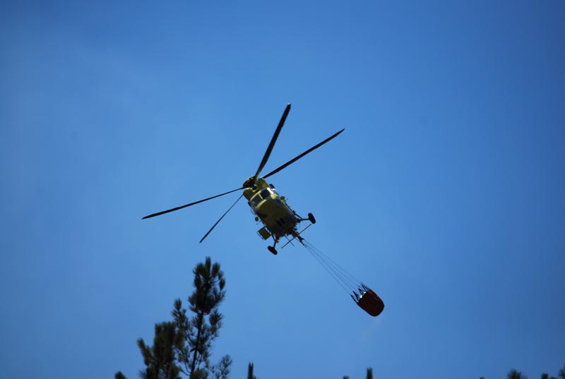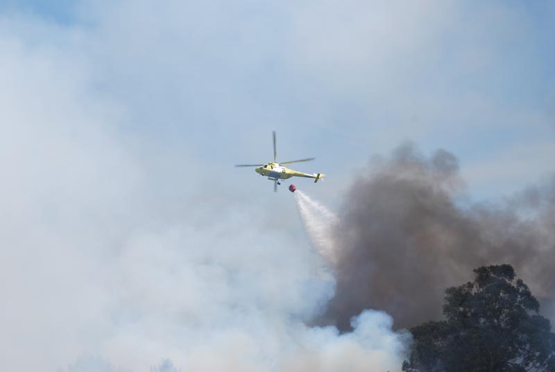 A las siete de la tarde, se daba por extinguido el incendio, pero aún se seguía enfriando el terreno y 2 helicópteros continuaban descargando agua en la zona.