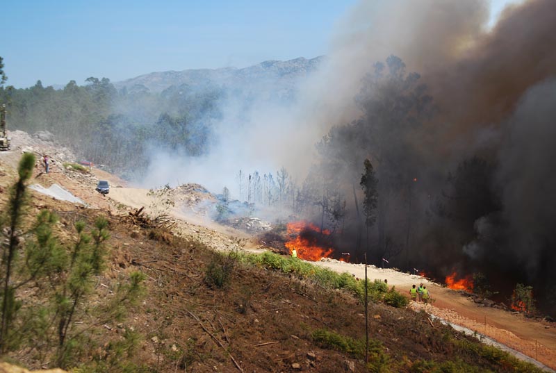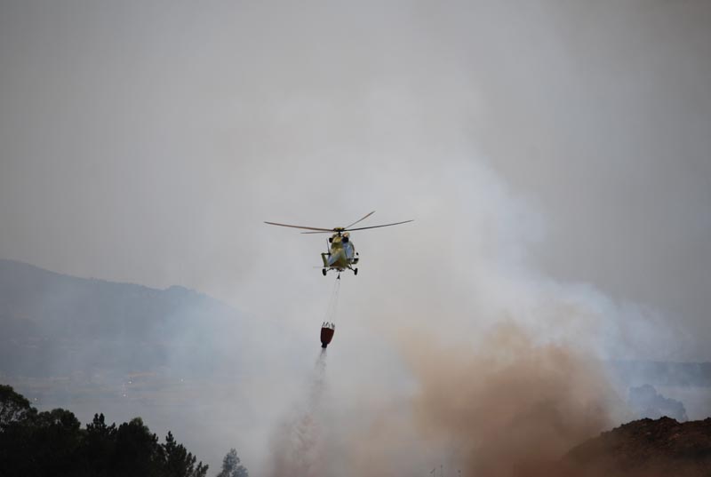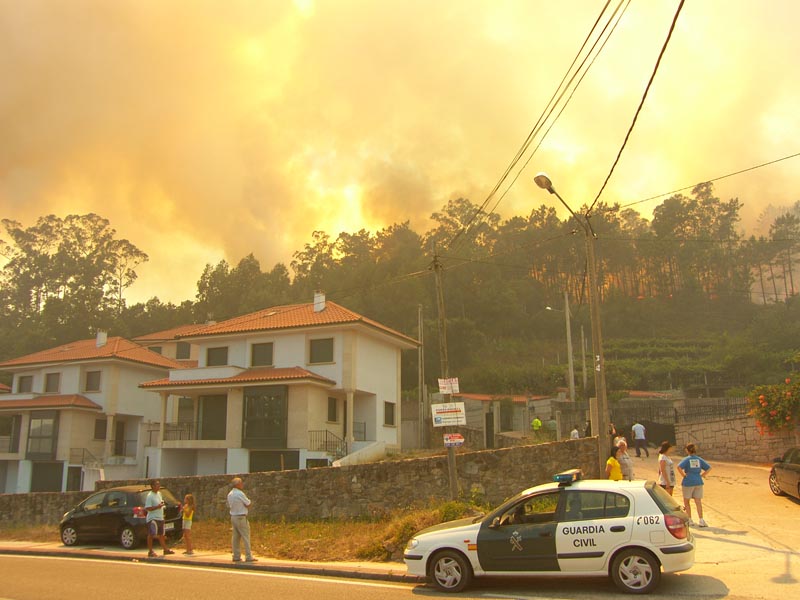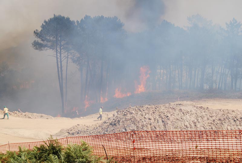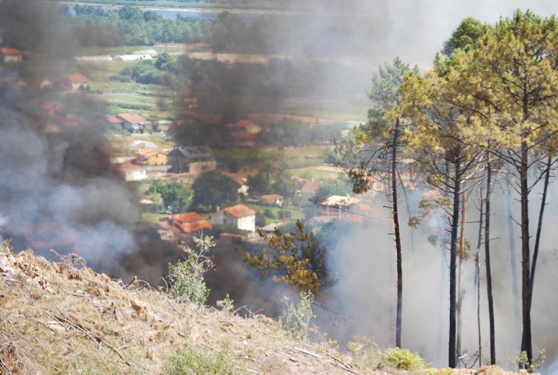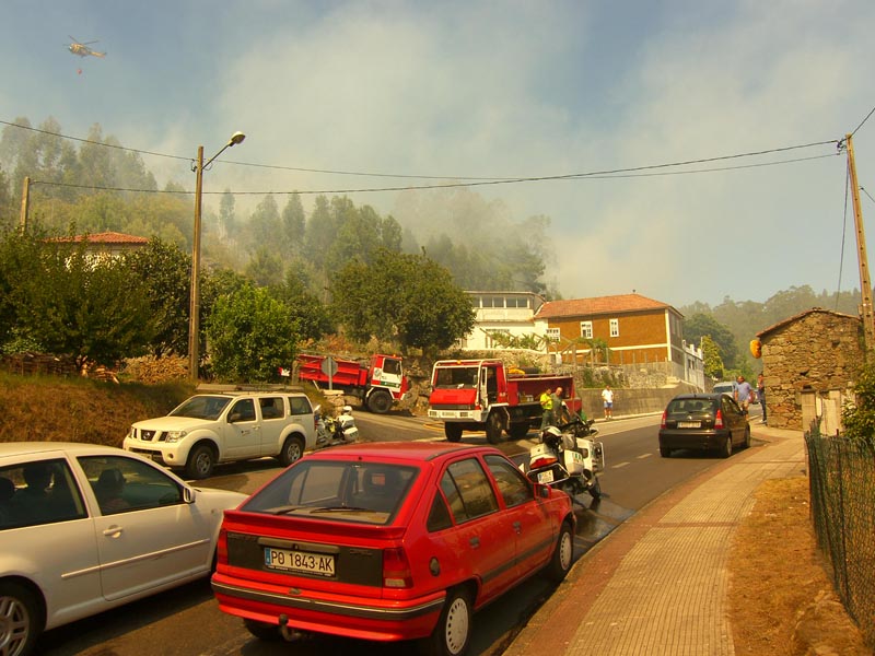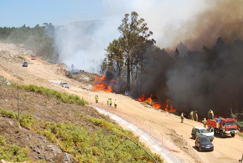El incendio sorprendía a los obreros que trabajan en las obras del Vial Tui – A Guarda, y cabe destacar, que gracias a éstas obras, se pudo controlar más efectivamente el fuego, ya que hizo de cortafuegos, evitando que se propagase al Monte de O Niño do Corvo en O Rosal, lo que ubiese provocado una tragedia aún mayor.