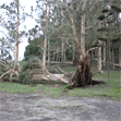 El monte Santa Tecla en A Guarda sufrió también la fuerza de Gong, contabilizándose la caída de al menos 10 árboles de grandes dimensiones, ocasionando diferentes desperfectos como la ruptura total de una de las cruces del Viacrucis Romano del Monte Santa Tecla, tras caer sobre la misma un eucalipto. A este daño patrimonial se suma también la caída de un cruceiro que data del año 1975 ubicado en la explanada de la cumbre del Tecla, que ha quedado también totalmente destrozado.