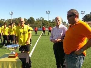 Antes de comenzar el partido el Guardés ha recibido de manos del Sr. Modesto, de la Federación Gallega, el trofeo de campeón la pasada temporada.