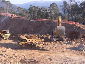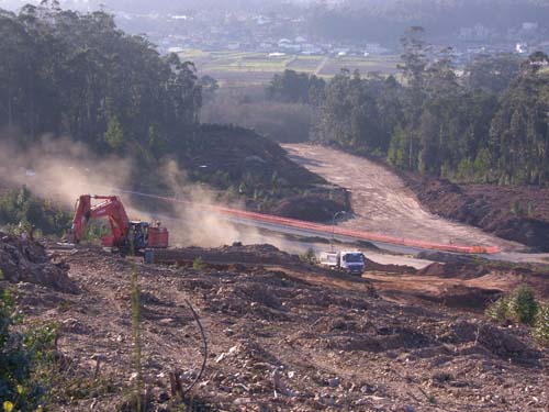 A maquinaria traballa sen descanso na preparación do terreo polo que pasará a Vía de Alta Capacidade como demostran as imaxes que tomamos preto da subida ó Niño do Corvo no Concello do Rosal.