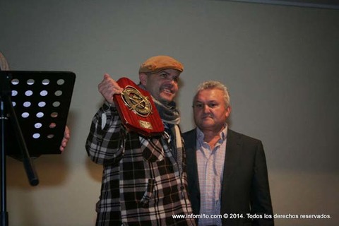 O presidente do Clube Robaleira, Sr. Serafín González Pacheco entregou unha placa conmemorativa deste acto ó cantautor Tino Baz