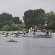 A procesión chegaba ata a zona fluvial do Destacamento da Mariña onde se sube a imaxe da Virxe do Carme á Fragata Cabo Fradera, un momento de moita emoción que é seguido por numerosos asistentes, moitos deles acompañan á Virxe en pequenas embarcacións de recreo ata a vella Ponte de Ferro que comunica Tui con Valenca do Minho. É precisamente neste punto onde moitas persoas tiran flores dende a ponte ó paso da Virxe, unha imaxe singular desta festa e un momento de moita devoción.