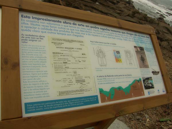 Un panel informativo, ubicado no inicio do camiño de acceso á cetárea, explíca ós visitantes os usos que tivo éste emplazamento fai xa algúns anos.