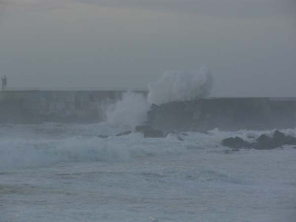 Unha pleamar que coincidíu cun temporal "coma os de antaño", nos recordan uns mariñeiros de A Guarda cando facíamos as fotografías no Porto de A Guarda.