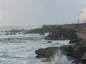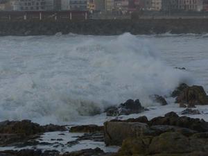 Noutro punto de A Guarda, O Porto, numerosos curiosos achegaronse para ver bater as ondas nos Diques do Porto de A Guarda, onde tamén algunhas rúas vironse afectadas, como a rotonda da Rúa do Porto, con restos de espuma, ramas, pedras, e a nova rotonda de Sta. Catalina.