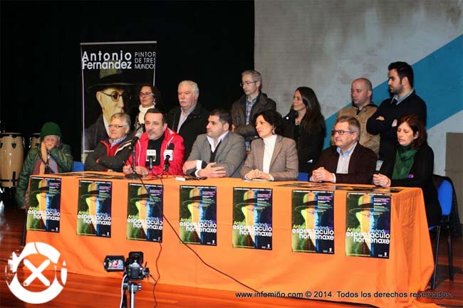 Uxío Benítez explicou aos medios a dinámica do acto do vindeiro domingo (19.30 horas, no auditorio), informando que haberá en primeiro lugar, unha parte institucional, na que se fará oficial o nomeamento de Fillo Predilecto, pasando logo ao espectáculo teatral, con guión e dirección de Suso Pando e Manuel Pombal.